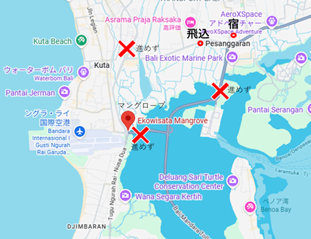 ・イジェン湖ツアー会社と連絡取れず ・バリ島では簡単な英語も通じない ・SIMなしスマホでは翻訳アプリ入れられず、会話が困難 ・デンパサルの街から脱出できず(主要道路は全て歩道が途中でなくなり、郊外へ徒歩移動できず) ・橋から海に身投げしようとするも歩道がないため上まで到達できず(パトカーはひっきりなしに走っている) ・マングローブの中で5日間絶食(人は水と食料を摂取しなくても、5日ごときでは死ねないらしい) ・終わりが見えず川に飛び込む(あと2息、肺の中に水を入れたら死ねたかもしれないのに浅くなったため溺れられず) ・折角海外まで来たのに終活断念 ・地元住民・地元警察・領事館に頼る ・12月28日 身内3人が迎えに来る(経費110万円) ・諦めて日本に帰国 |