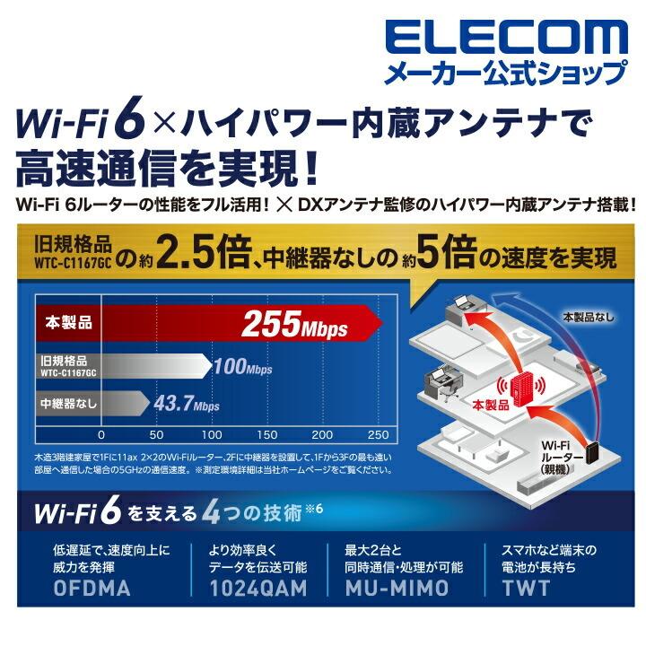 エレコム 無線LAN中継器 Wi-Fi 6 (11ax) 1201+574Mbps 無線LAN 中継器